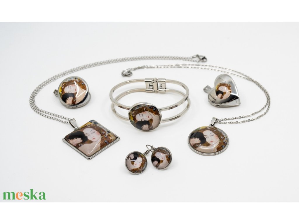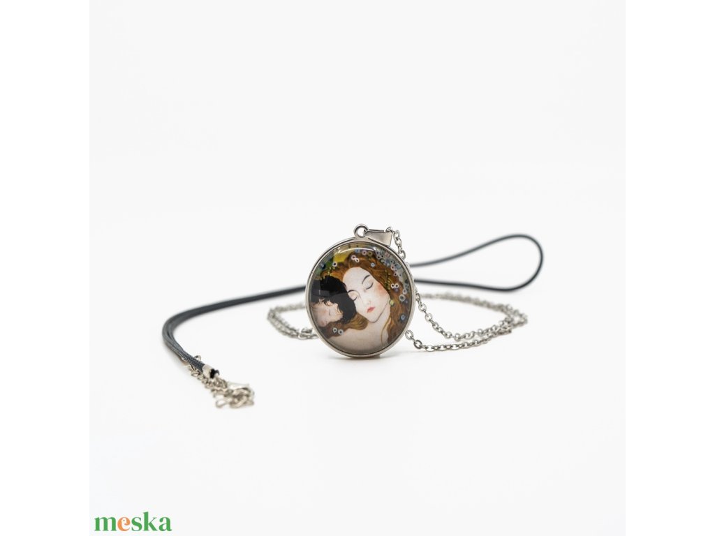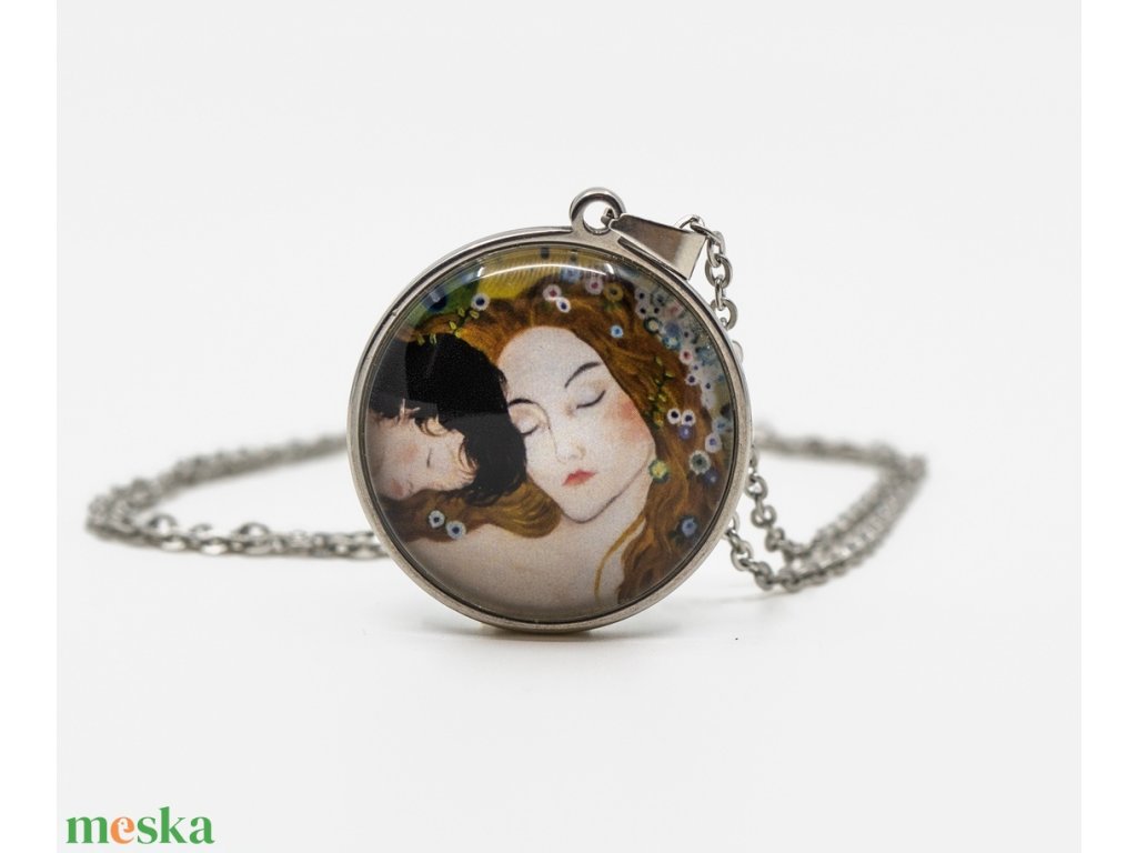 Gustav Klimt Anya és gyermeke csodálatos festménye, az anyaság - az anya és gyermek kapcsolat szimbóluma, medálba zárva. Minden anyának, nagyanyának ajánlom :) Az ékszer jó minőségű acél alap 30 mm-es üveglencsés festmény reprodukcióval. 45+5 cm hosszú acél nyakláncon. Klimt Anya és gyermeke karkötőt találtok a boltomban. Fehér organza tasakban postázom, ajándékozásra készen...